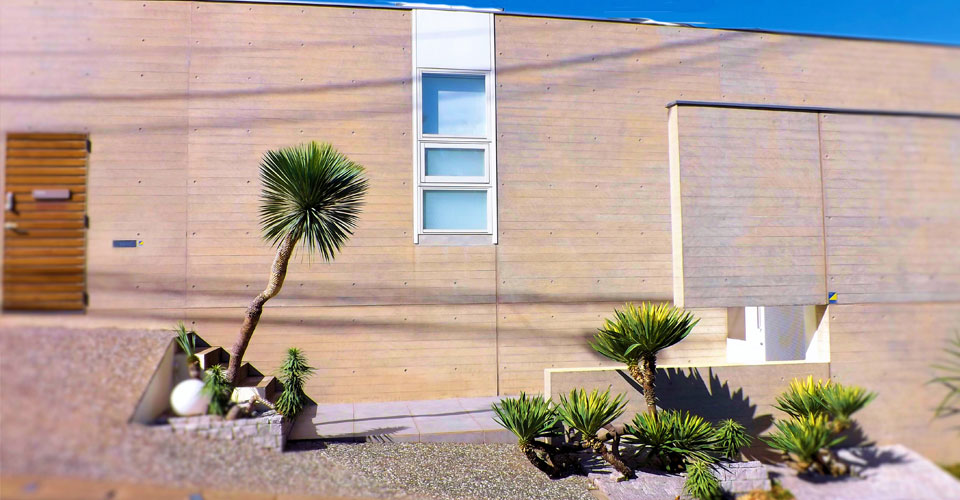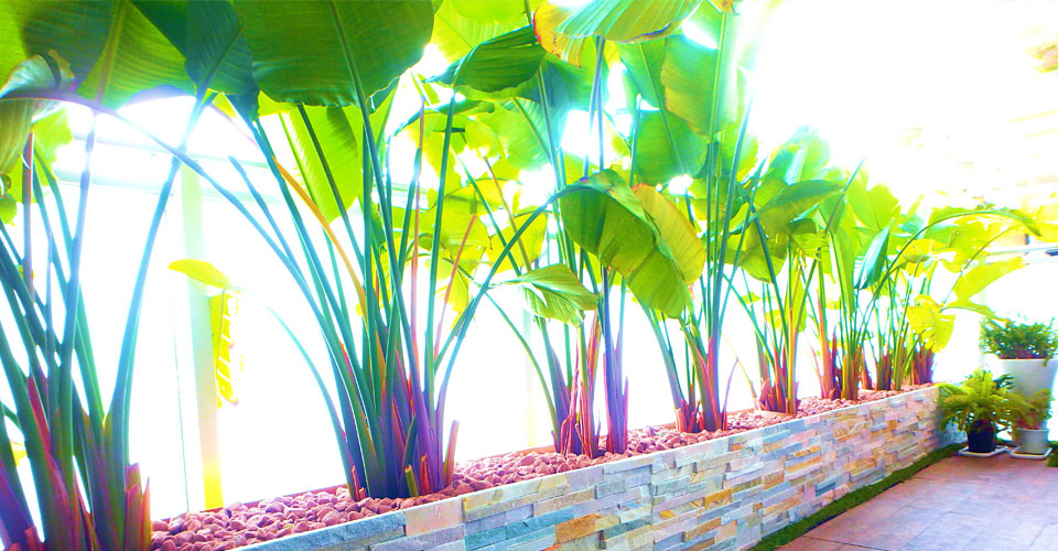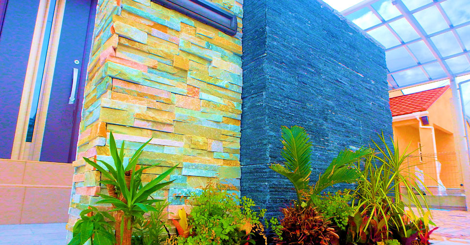 デザインにこだわりたいけどメンテナンスを手軽に済ませたい、と言うお客様のご要望に合わせて、設計、施工しました。大地から沸き立つ植物の力強い躍動感と近代的な建造物の融合を表現。
