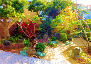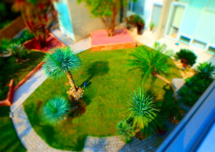 本物のお庭と同じように造っていくので、エクステリアの仕様から樹木の配置による奥行きとバランスまで、